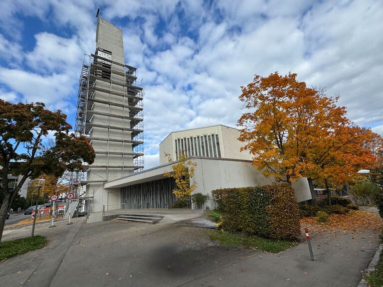 Die seit Langem geplante Sanierung des Kirchturms St. Thomas Morus hat begonnen. Von Mitte Oktober bis voraussichtlich Mitte Dezember wird der Turm vom Gerüst verhüllt.
